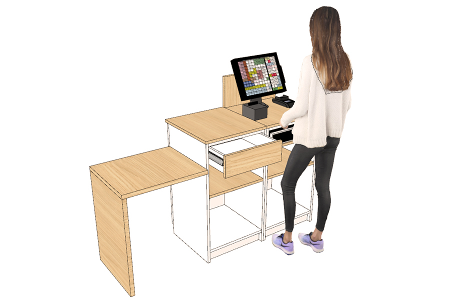 ALV vous propose ces modules caisses, modulables, qui vous offre une multitude de possibilités selon l’espace disponible, la configuration de votre boutique et le type de banque d’accueil souhaité. Afin d’adapter au mieux le mobilier à vos locaux et à vos visiteurs, nous vous proposons également des solutions avec normes PMR (personnes à mobilité réduite).